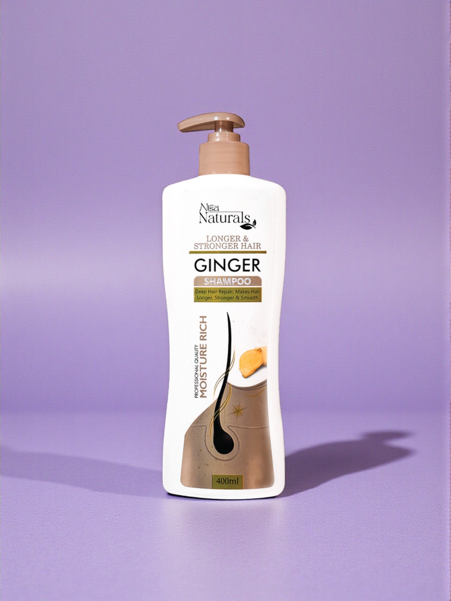 Introducing Ginger Longer & Stronger Hair Shampoo, a powerful blend infused with natural ginger extract to nourish your scalp, strengthen your strands, and promote long, healthy hair. Rich moisturize, deeply reinforcing hair from root to tip, this shampoo helps reduce breakage, enhance growth, and improve overall hair texture. It deeply repairs and makes hair longer, stronger & smooth.