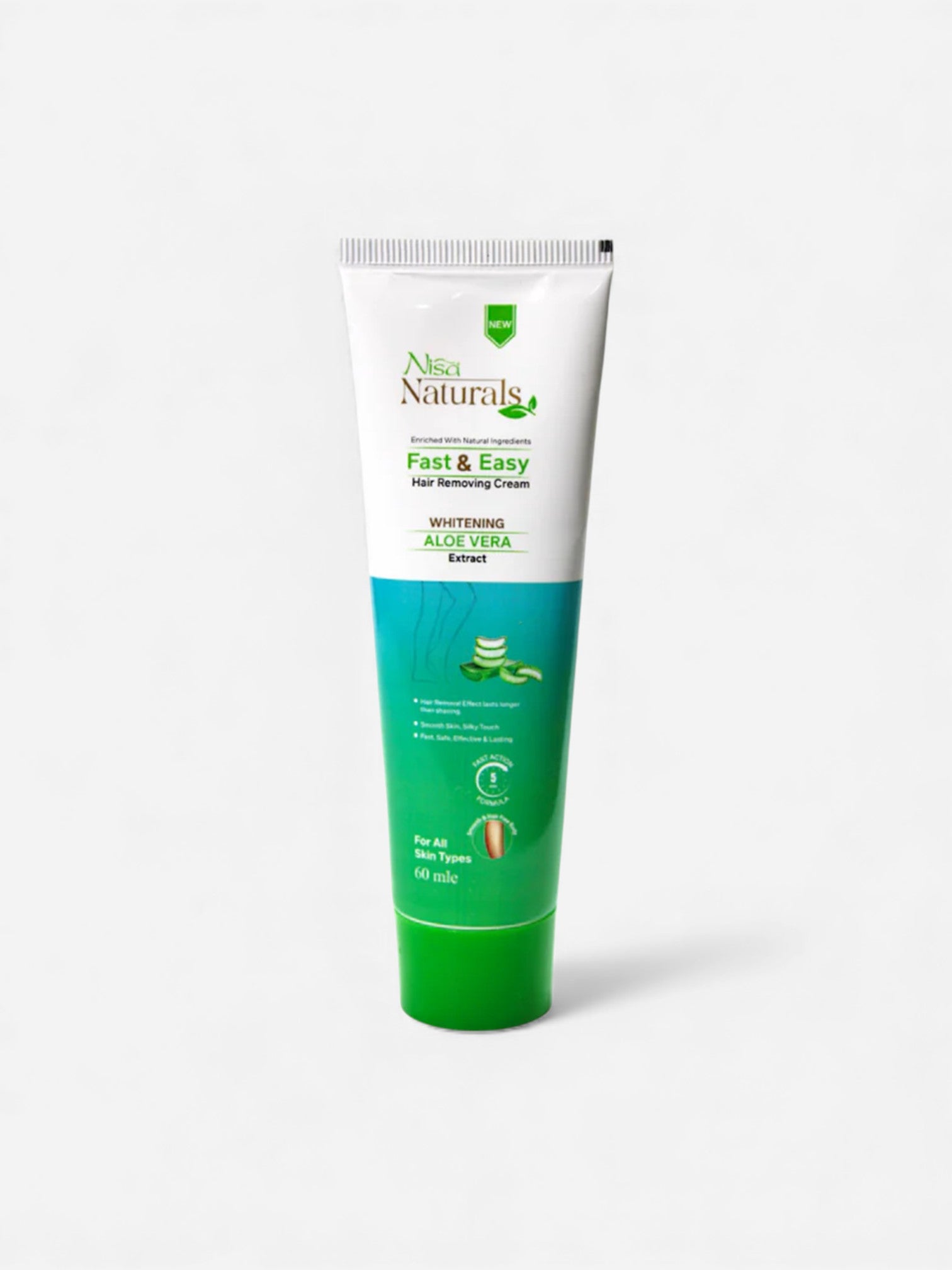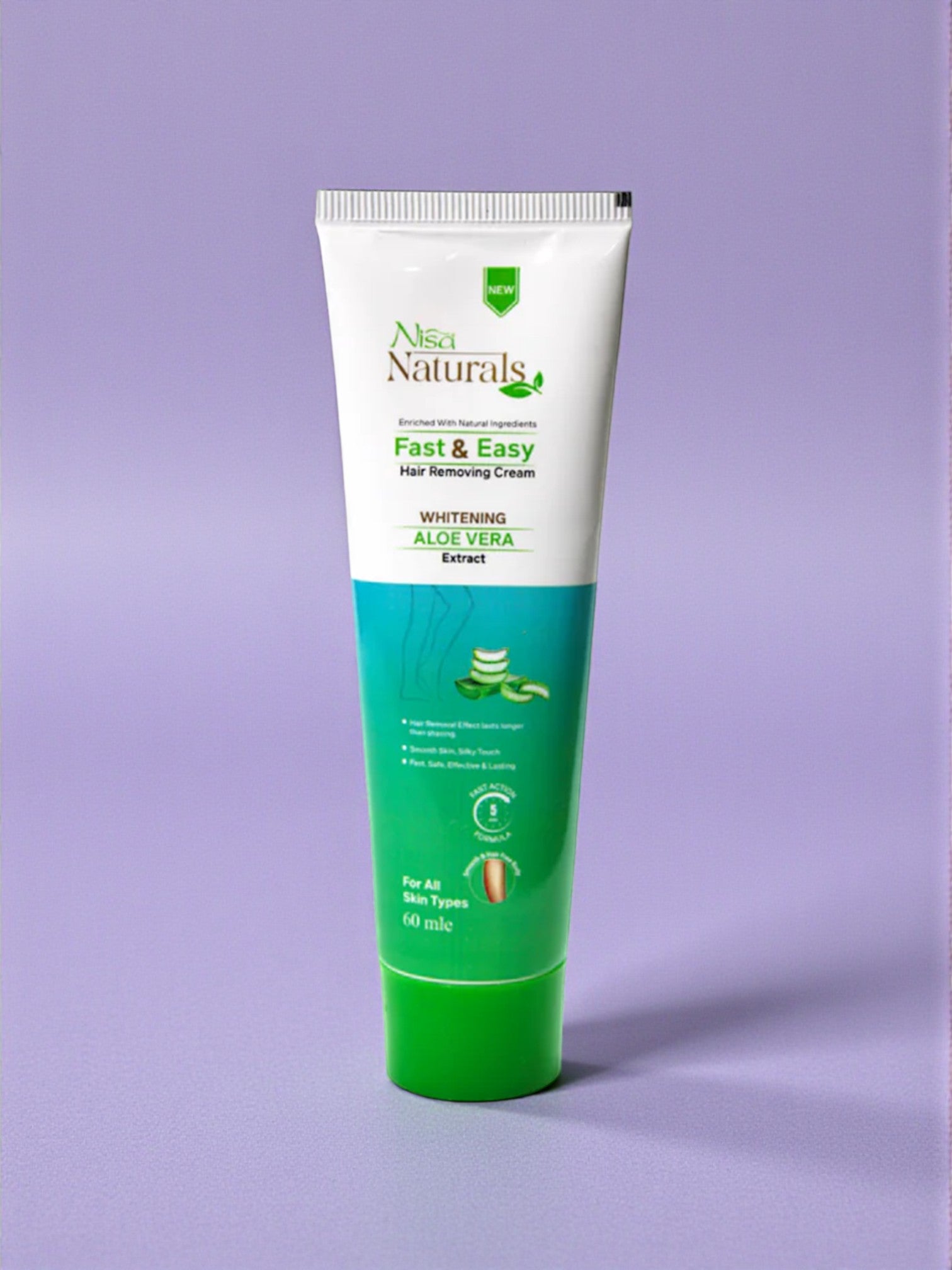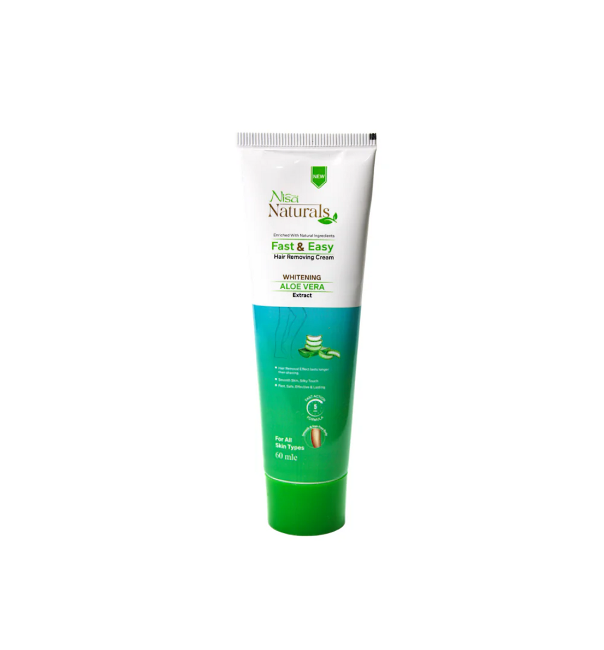 Nisa Naturals Hair Removal Creme has been developed after extensive research. Its unique, fragrant and fast acting Aloe Vera extract formula leaves your skin. 'Petal soft,' without leaving any unpleasant odour after use or darkening of skin. Aloe Vera Extract soothes sensitive skin after hair removal.